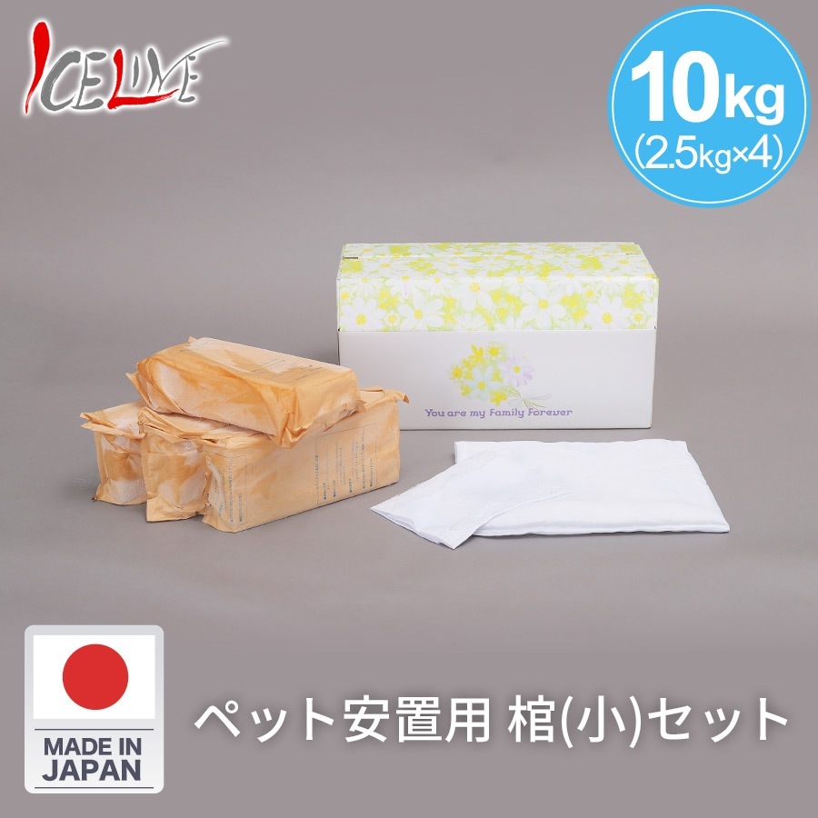 ドライアイス ペット安置用 10kg + 棺(小)セット 【送料無料】(スライス 2.5kg × 4) 専用保冷BOX・カバー敷布団付